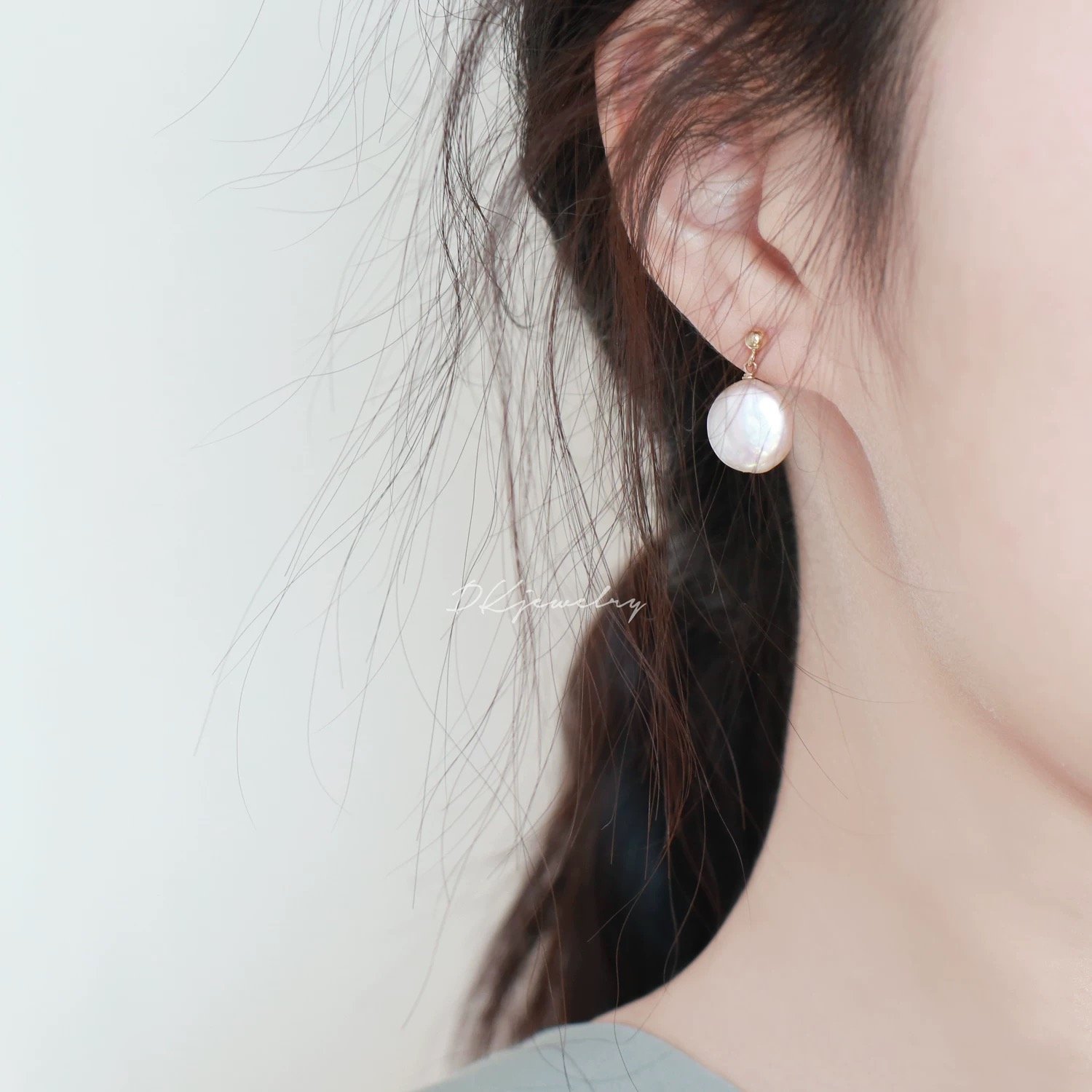Pearl Type: Freshwater Nucleated Baroque Pearl; Accessory Material: S925 Silver; Product Weight: Approx. 2.3g; Pearl Size: Approx. 10-12mm; Other: High Luster/Button-Shaped Baroque Pearl