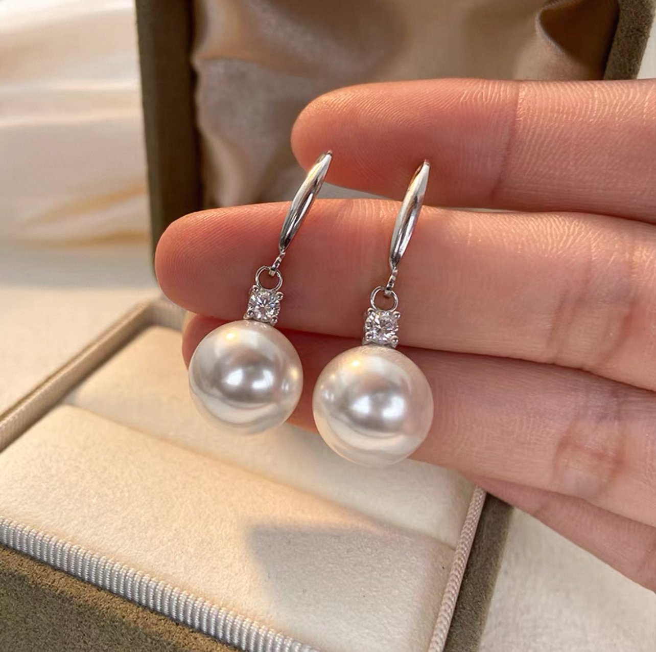 Be the first to review “Freshwater cultured seedless white pearl earrings, 8-9mm”